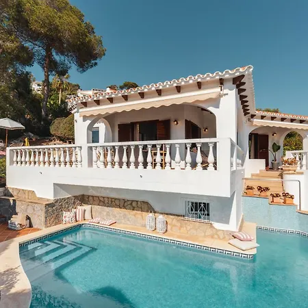 Die am Strand Villa Luciana Cala En Porter verfügt über eine Terrasse mit Aussicht aufs Meer sowie einen privaten Swimmingpool.